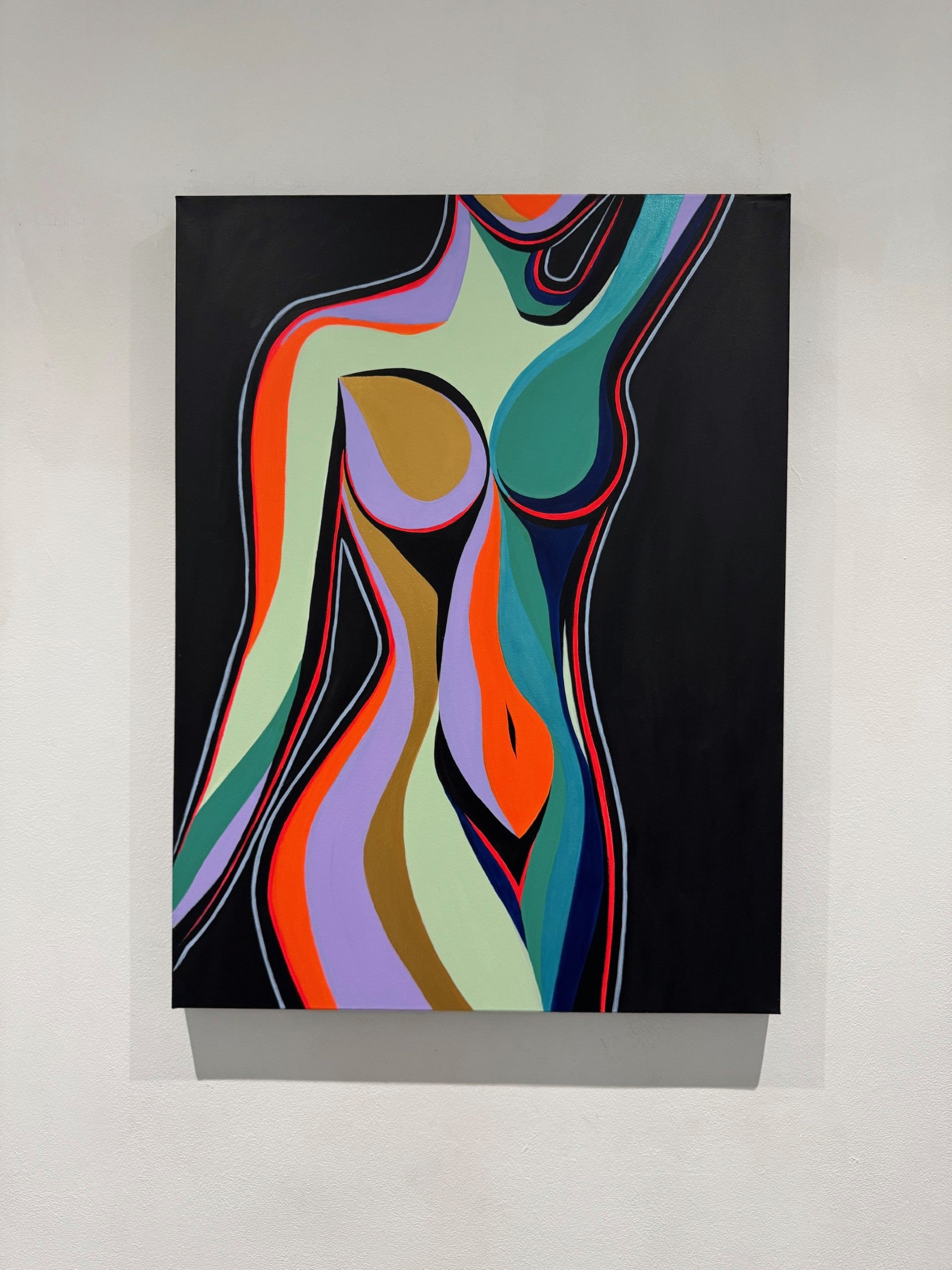 With electric hues of neon orange and green, the piece pulses with vibrancy, defiance and life.